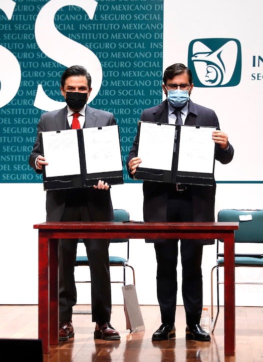 El director general del Seguro Social, Zoé Robledo, y el titular de Cofepris, Alejandro Svarch Pérez, firmaron como testigos de honor dicho acuerdo en donde se establecen las bases generales para la habilitación de las ventanillas de atención.