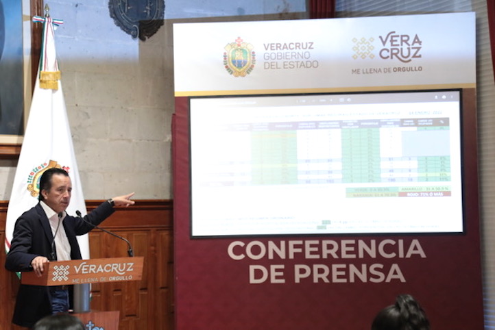 En su primera conferencia de prensa del año, el mandatario estuvo acompañado por los secretarios de Salud, Roberto Ramos Alor; Educación, Zenyazen Roberto Escobar García, y Protección Civil, Guadalupe Osorno Maldonado.