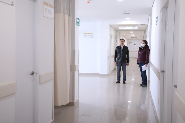 Durante un recorrido de supervisión, acompañado por la directora de Infraestructura de Salud, Karla Peregrina Bermúdez, el mandatario encontró una obra terminada, con instalaciones y acabados de calidad, a sólo días de ser concluida.