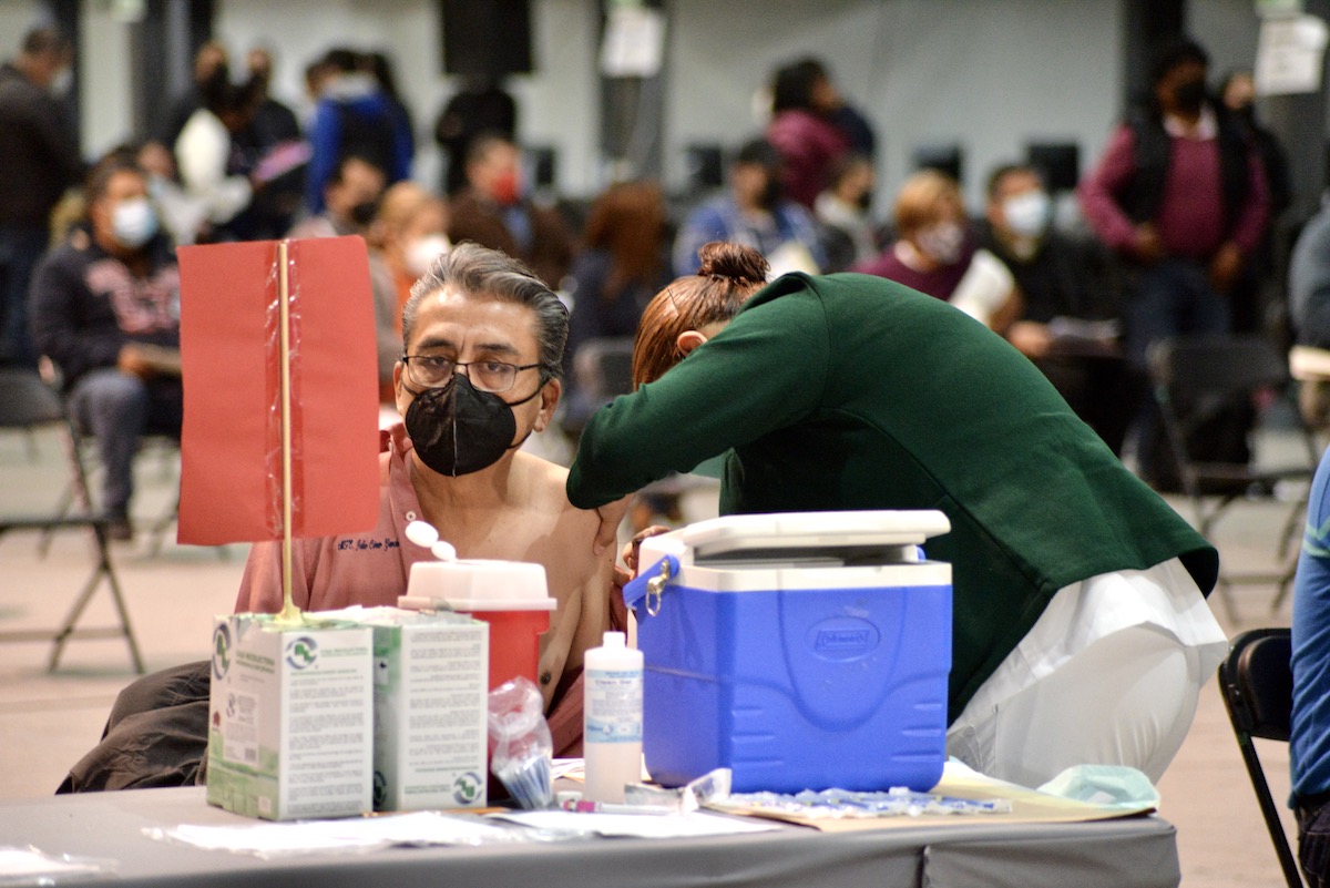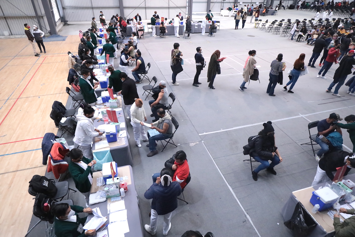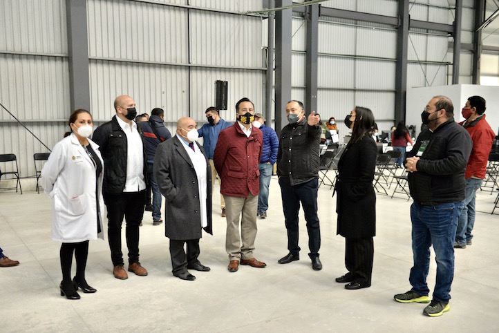 Acompañado por los secretarios de Salud y Educación, Roberto Ramos Alor y Zenyazen Escobar García, desde el Gimnasio Omega dio cuenta de dicha labor para facilitar el 100 por ciento el retorno a las aulas, teniendo como meta inocular a 177 mil docentes del 17 al 21 de enero.