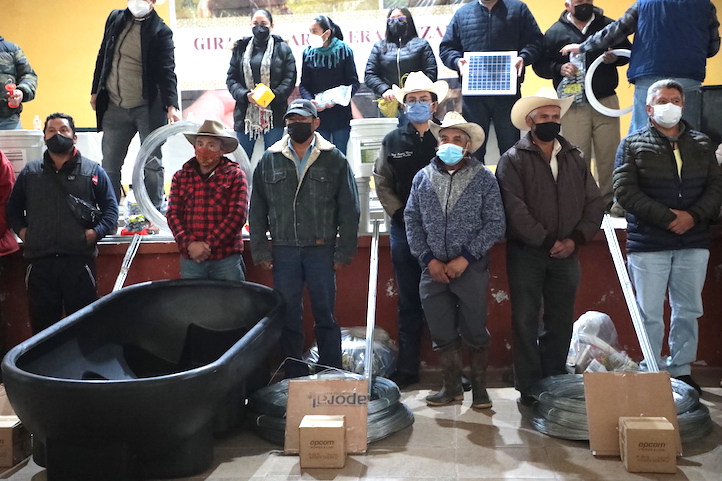 Así, los paquetes tecnológicos representan una inversión superior a los 8 millones de pesos y constan de cercos eléctricos, bebedores móviles de 500 y 850 litros, herramientas agrícolas, apícolas, avícolas, alta fructosa, paneles solares, indumentaria de protección, material para rehabilitación de galeras ganaderas, desbrozadoras y fumigadoras del programa Fomento a la Producción Agrícola para la Suficiencia Alimentaria.