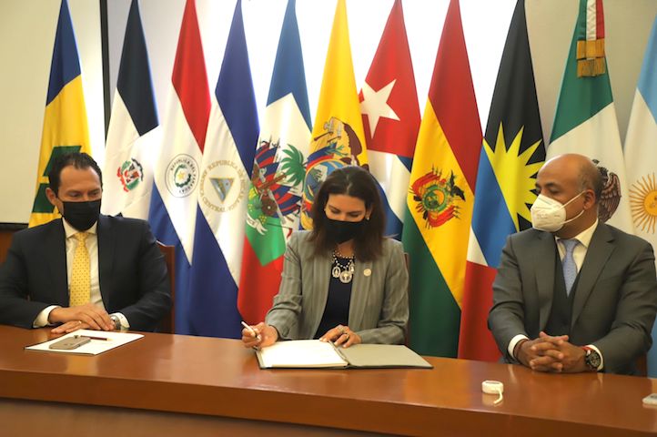 Ciudad de México, 08 de febrero de 2022.- La Secretaría de Relaciones Exteriores informa que el día de hoy la embajadora de la República Dominicana en México, María Isabel Castillo Báez, procedió a firmar la adhesión de ese país al Convenio Constitutivo de la Agencia Latinoamericana y Caribeña del Espacio (ALCE).