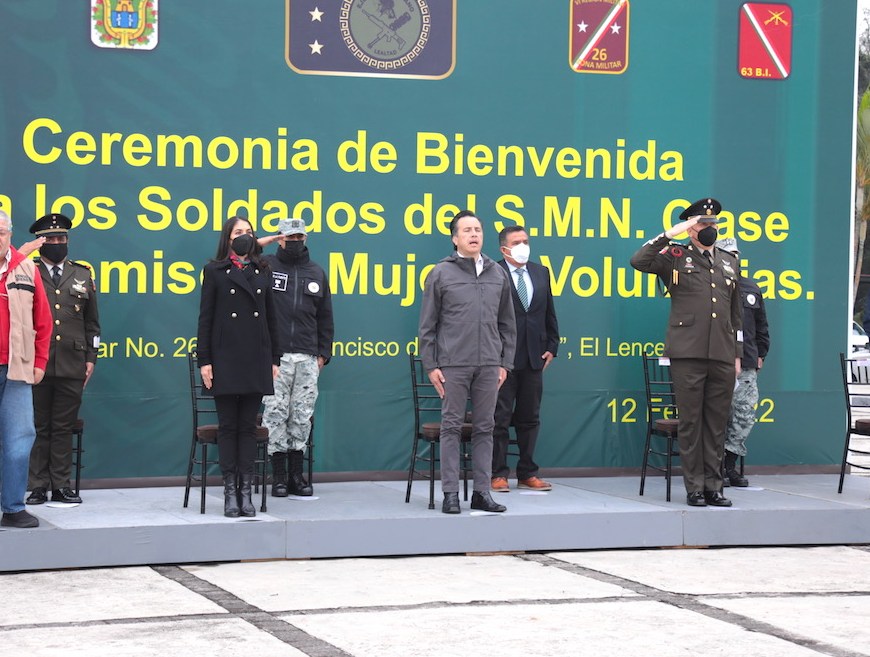 Xalapa, Ver., 12 de febrero de 2022.- Al concluir la ceremonia de bienvenida a soldados del Servicio Militar clase 2003, remisos y mujeres voluntarias, el gobernador Cuitláhuac García Jiménez los invitó a honrar la institución que ha defendido la soberanía nacional en muchas ocasiones de la historia y que hoy contribuye al bienestar en Veracruz y el país. Destacó la logística que encabezó el Ejército … Continúa leyendo Exalta el Gobernador contribución del Ejército Mexicano en la vida de Veracruz y México
