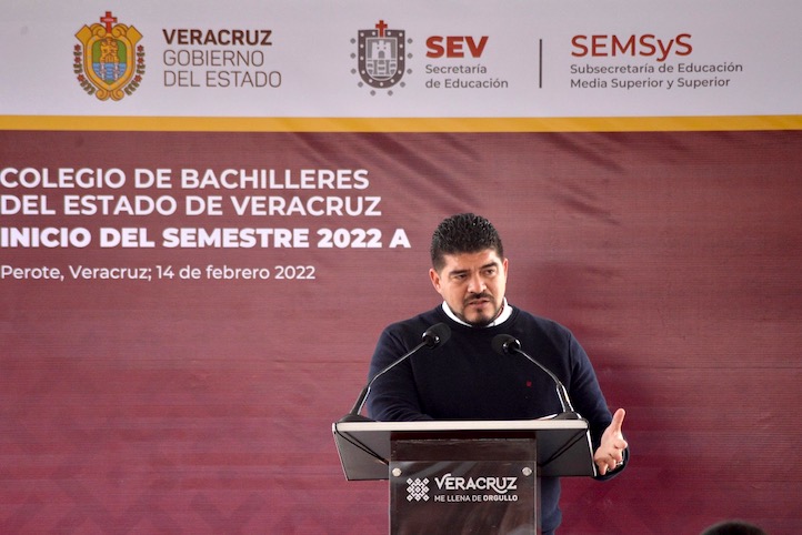Perote, Ver., 14 de febrero de 2022.- A casi un año de iniciado el Plan Nacional de Vacunación, Veracruz considera conveniente regresar al aprendizaje que se impulsa desde la escuela, por lo que este día el gobernador Cuitláhuac García Jiménez puso en marcha el Semestre 2022 A desde el Plantel 58 del Colegio de Bachilleres del Estado de Veracruz (COBAEV).