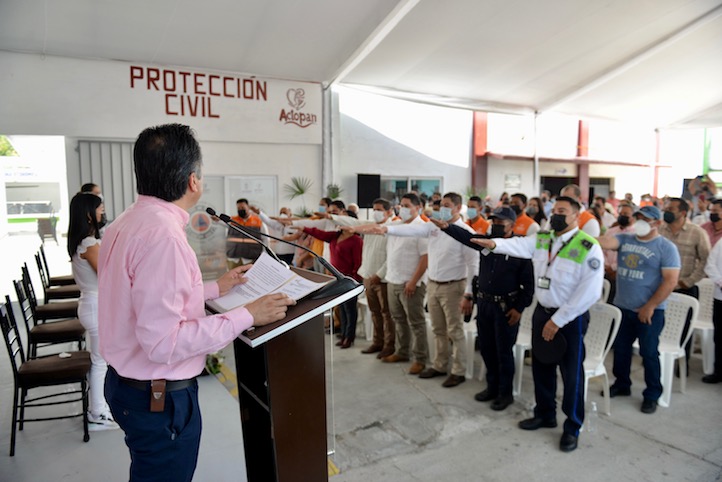 Acompañado por la titular de la Secretaría de Protección Civil, Guadalupe Osorno Maldonado, y la alcaldesa María Esther López Callejas, tomó protesta al Consejo Municipal de PC como el ente de gestión integral del riesgo y primer respondiente ante las emergencias que tuvieran lugar, el cual mantendrá comunicación constante con el Sistema Estatal.