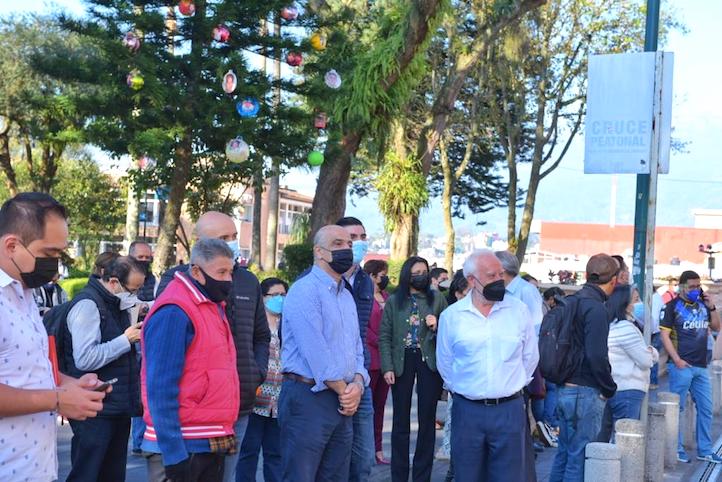 Funcionarios y autoridades municipales, entre ellos el alcalde Ricardo Ahued, desalojaron las instalaciones y se trasladaron a la explanada del parque Benito Juárez para aguardar el desarrollo de los protocolos correspondientes.