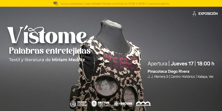 Xalapa, Ver., 14 de marzo de 2022.- La Pinacoteca Diego Rivera, en coordinación con el Museo Nacional de Arte, invita al público a disfrutar la exposición interdisciplinaria Vístome. Palabras entretejidas, obra de la reconocida escultora Miriam Medrez, a partir del jueves 17 de marzo a las 18:00 horas.