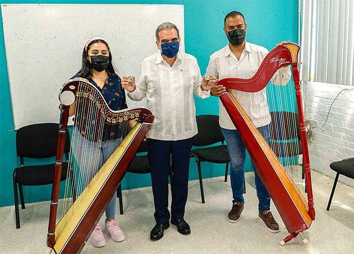 Enseguida atendieron a dos demostraciones de grupos dirigidos por integrantes de la agrupación Nematatlín, primero del ensamble de maderas y luego del ensamble de arpas, donde Salvador Peña Herrera y Yolotzin Campos Loyo le entregaron un recuerdo por su visita.