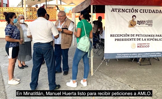Dado que sus actividades serán privadas por la veda electoral, desde ayer jueves por la tarde llegó a Minatitlán el delegado de Bienestar Manuel Huerta con personal de la delegación para recibir este viernes, entre 7 de la mañana y 12 del día, las peticiones que le quiera hacer la población, para remitirlas a la Oficina de Presidencia de la República.