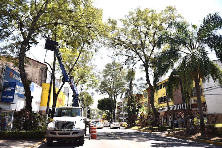 La atención se brinda en camellones y áreas jardinadas de vialidades como Manuel Ávila Camacho, Rafael Murillo Vidal, Circuito Presidentes, Paseo de las Palmas y Araucarias, donde se realiza la limpieza de follaje seco y plantas parásito que pueden sobrecargar las ramas.