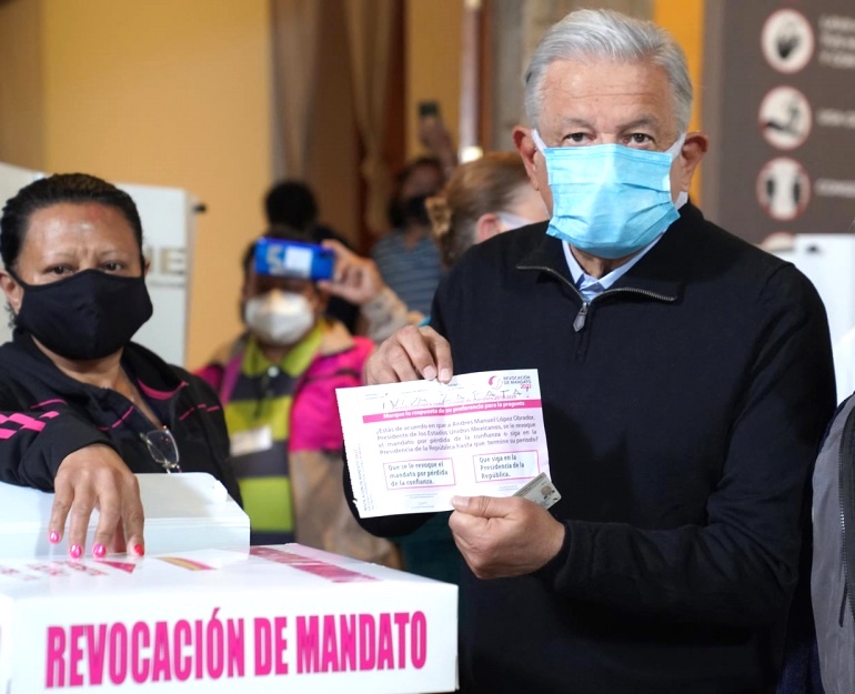 Ciudad de México. 10 de abril de 2022.- “El mejor sistema político es la democracia”, afirmó el presidente Andrés Manuel López Obrador al participar en el ejercicio democrático de este 10 de abril.