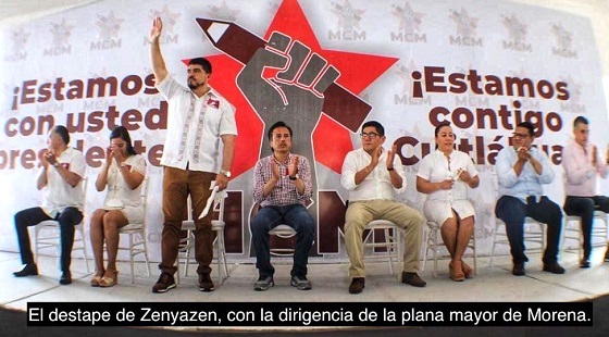 Avalándolo estuvieron presentes el delegado en funciones de presidente estatal de Morena, Esteban Ramírez Zepeta, así como el secretario de organización de su dirigencia, Yair Ademar Domínguez, por lo que se puede considerar que Zenyazen es el verdadero candidato del gobernador, si bien este apoya a la zacatecana secretaría de Energía Rocío Nahle, pero cuya candidatura se ve cada vez más complicada y no tiene ninguna base social en el estado.