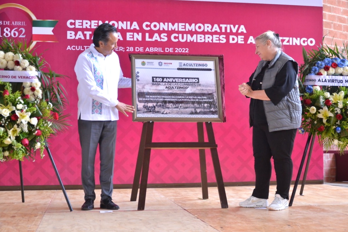 Acultzingo, Ver., 28 de abril de 2022.- Con un acto solemne encabezado por el gobernador Cuitláhuac García Jiménez y la develación de una placa por los 160 años de la Batalla de Las Cumbres, primer enfrentamiento armado entre los ejércitos mexicano y francés durante la Segunda Intervención Francesa en México, el Gobierno de Veracruz da realce y trascendencia a dicho evento.
