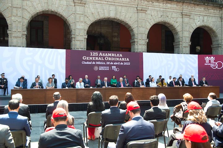 Ciudad de México, 28 de abril de 2022.- Al participar en la 125 Asamblea General Ordinaria del Infonavit, el presidente Andrés Manuel López Obrador reafirmó el compromiso de garantizar el derecho a la vivienda las y los trabajadores del país, mejorar su calidad y atender el abandono debido a las condiciones y sitios donde fueron construidas.