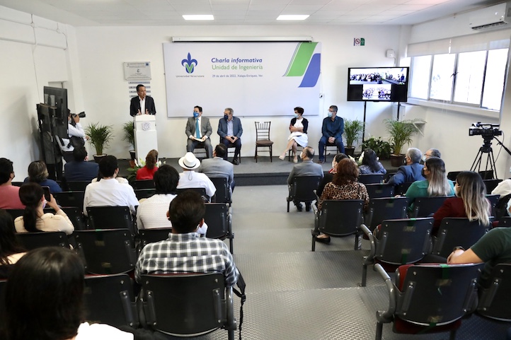 En la charla estuvieron la vicepresidenta de Comunicación de CB, Nina Ilse Mayagoitia García; el rector de la UV, Martín Gerardo Aguilar Sánchez; el secretario de Desarrollo Económico y Portuario, Enrique Nachón García; directivos y comunidad de las facultades de Ingeniería Civil, Mecánica Eléctrica, Ciencias Químicas y Química Farmacéutica Biológica.