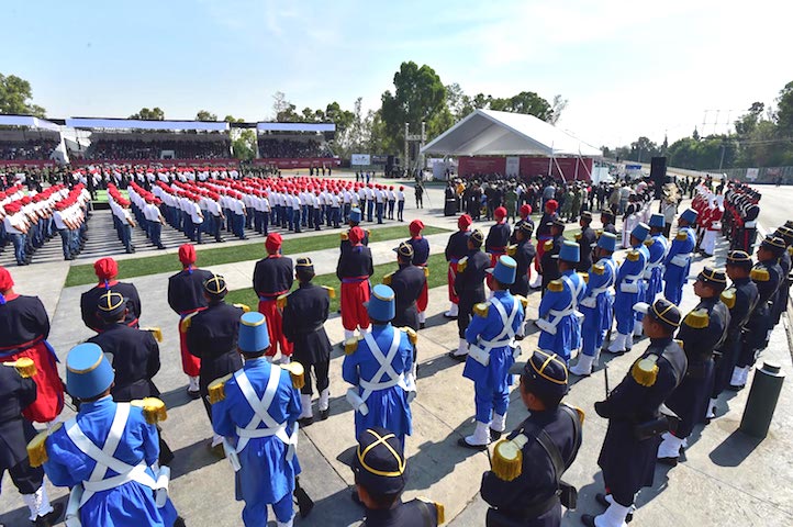 En la conmemoración, el jefe del Ejecutivo realizó la toma de protesta de bandera a jóvenes del Servicio Militar Nacional, clase 2003 anticipados, remisos y mujeres voluntarias.