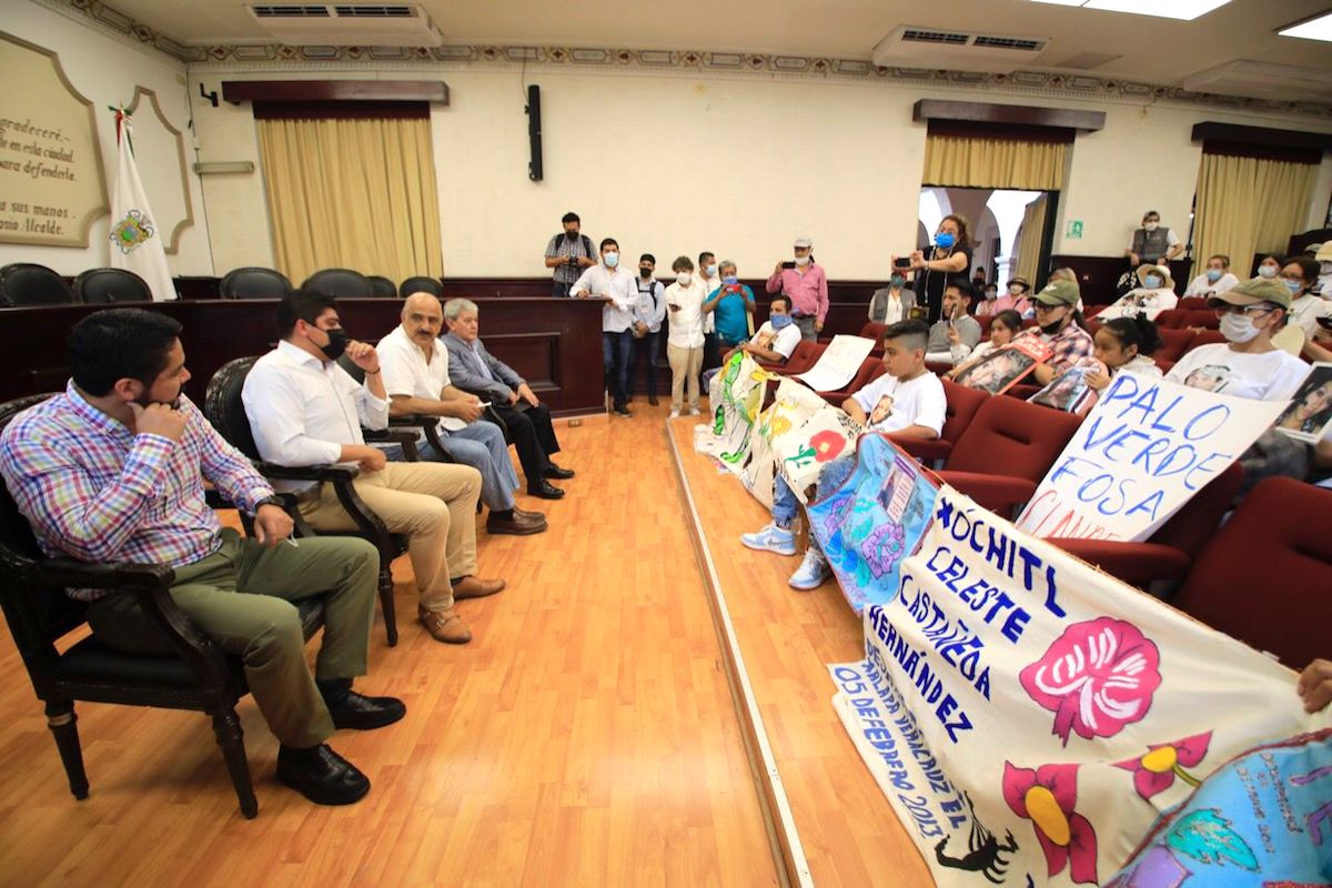 Acompañado por los regidores Daniel Fernández Carrión y Alfonso Marcos García Castillo y el secretario del Ayuntamiento, Ramón Antonio Ramos Niembro, el Presidente Municipal se comprometió a realizar todo lo que esté dentro de las atribuciones y competencia local, pues se trata de una lucha legítima que cuenta con todo el apoyo de la administración municipal.