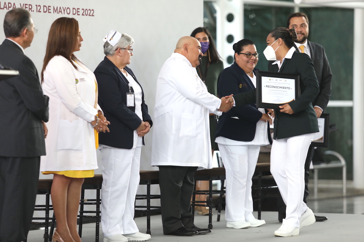 Xalapa, Ver., 12 de mayo de 2022.- En el marco del Día Nacional e Internacional de la Enfermera y el Enfermero, la Secretaría de Salud (SS), rindió homenaje a profesionistas de las instituciones públicas por su dedicación y esfuerzo atendiendo la contingencia sanitaria por SARS-CoV-2 y en las jornadas del Plan Nacional de Vacunación.