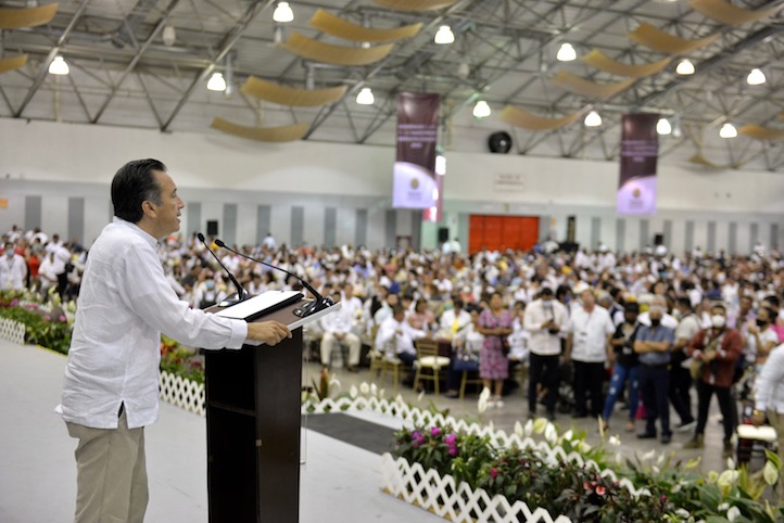 Boca del Río, Ver., 16 de mayo de 2022.- Durante el festejo del Día de la Maestra y el Maestro, el gobernador Cuitláhuac García Jiménez se congratuló de las acciones emprendidas por la Federación para enaltecer el papel del magisterio, luego de una época en que se quiso denigrar tan importante labor.