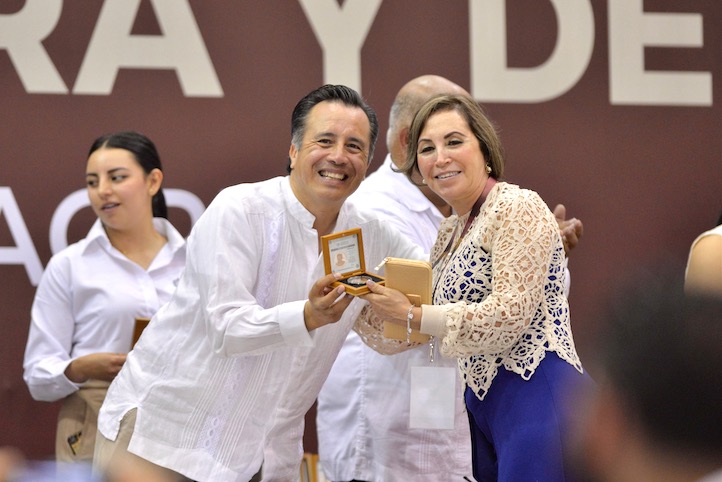 Las autoridades entregaron las medallas Ignacio Manuel Altamirano, Carlos A. Carrillo, Rafael Ramírez y Enrique C. Rébsamen a 2 mil 461 docentes de los sistemas federal y estatal por 40 y 30 años de servicio ininterrumpidos. En el presídium estuvieron también la Oficial Mayor de la SEV, Ariadna Aguilar Amaya; el secretario de Gobierno Eric Cisneros Burgos; subsecretarios y líderes de organizaciones sindicales.