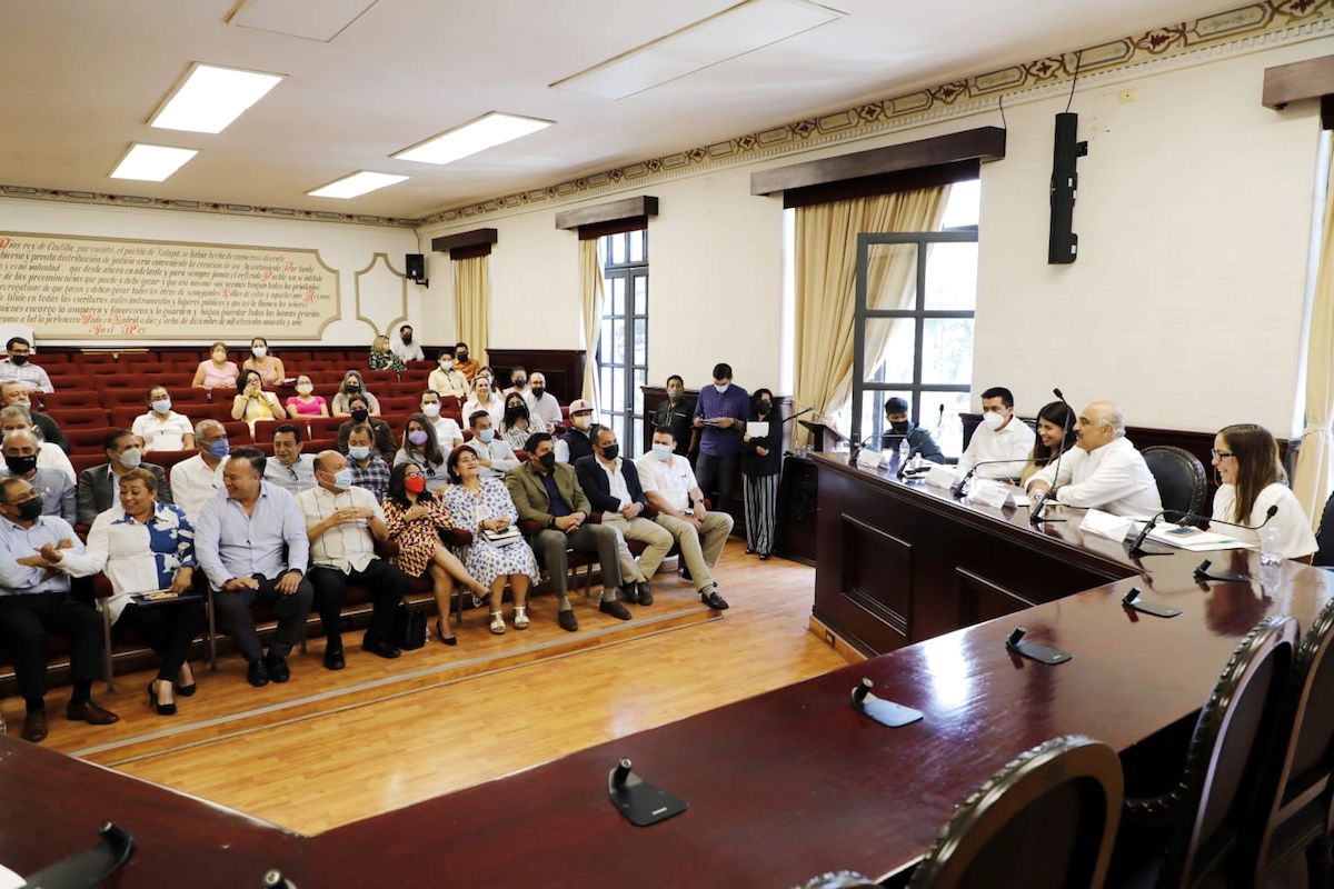 En la Sala del Cabildo, el presidente municipal Ricardo Ahued Bardahuil destacó la presencia del empresariado representado por el Consejo Coordinador Metropolitano (CCM) y otras Cámaras, lo que refleja la disposición de trabajar mano a mano y codo a codo en proyectos de beneficio social.