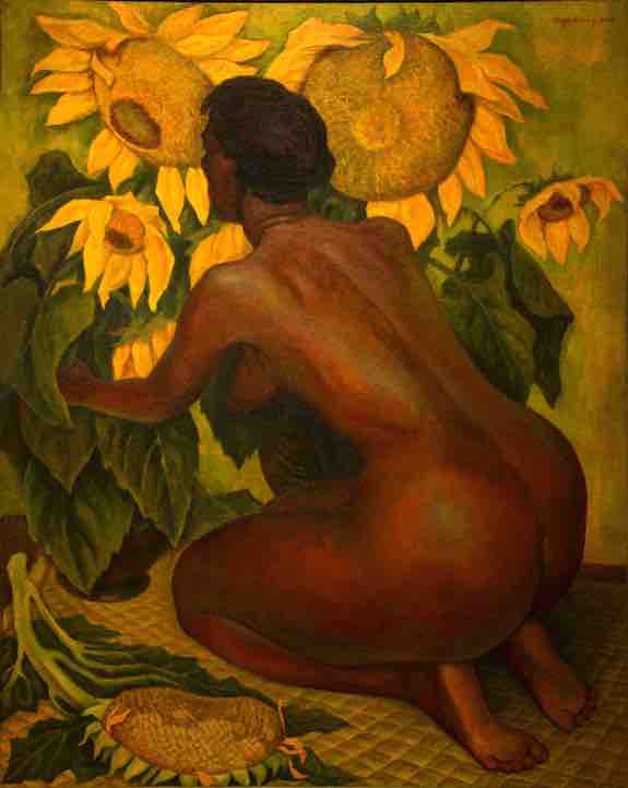 El IVEC y el MAM invitan a conocer y apreciar el óleo Desnudo con girasoles (1946), importante pieza de la Colección Veracruzana Diego Rivera, en la exposición Detrás de los andamios, muestra que podrá visitarse a partir de hoy, de martes a domingo en horario de 11:00 a 17:00 horas en este recinto ubicado en la Avenida Paseo de la Reforma y Gandhi s/n, en la Ciudad de México.