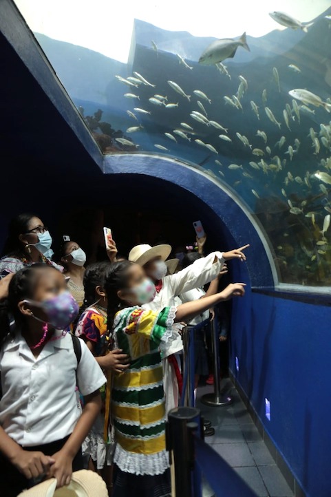 Veracruz, Ver., 19 de mayo de 2022.- Entusiasmados de visitar por primera vez el Aquarium del Puerto de Veracruz, estudiantes de primaria y secundaria de Actopan, Amatlán de los Reyes, Camerino Z. Mendoza y Playa Vicente fueron los primeros en recorrer las instalaciones durante su reapertura, celebrando el desarrollo de espacios destinados a la preservación de la fauna marina y la investigación científica.