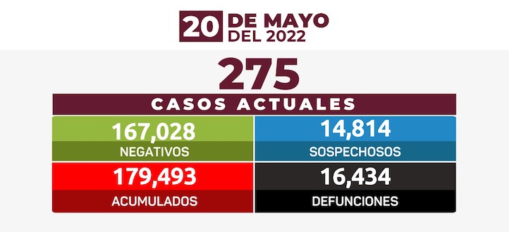 Con corte a este viernes, en Veracruz hay 275 contagios activos de COVID-19 y 96 probables