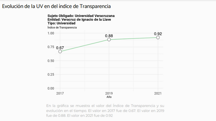 Rosales Ruiz también puntualizó que entre 2017 y 2021, la UV elevó su calificación en el tema de transparencia, al pasar de 0.67 a 0.92.