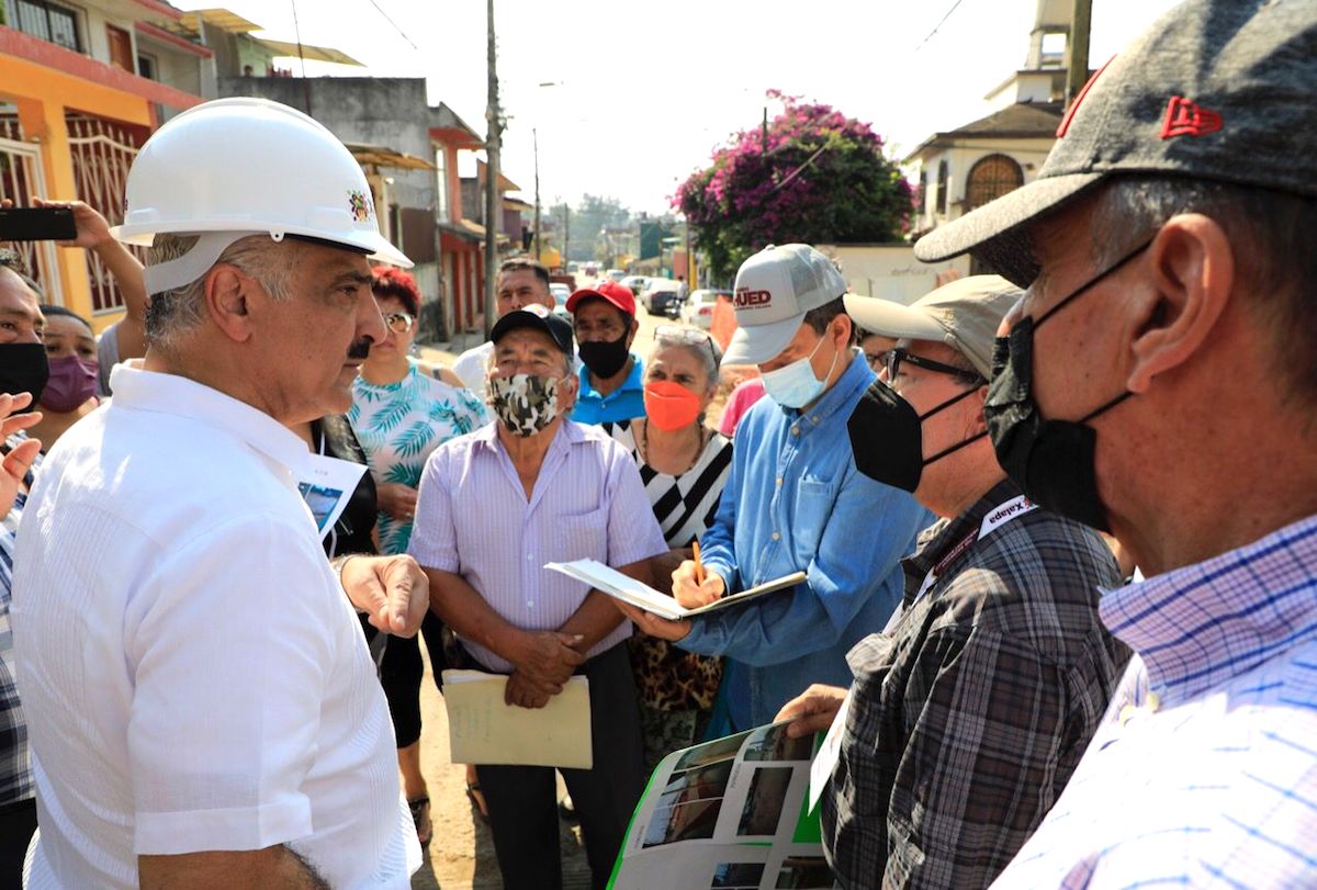 Xalapa, Ver., 21 de mayo de 2022.- El alcalde Ricardo Ahued Bardahuil, durante el recorrido que realizó junto con personal del Ayuntamiento capitalino por la colonia 21 de Marzo, atendió planteamientos ciudadanos para la ejecución de infraestructura urbana y ampliación de servicios públicos.