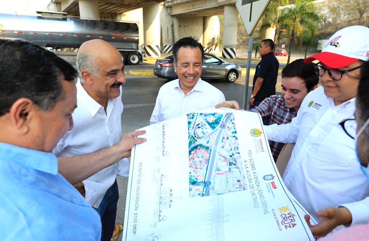 Xalapa, Ver., 21 de mayo de 2022.- Este sábado, el gobernador Cuitláhuac García Jiménez y el alcalde Ricardo Ahued Bardahuil, llevaron a cabo un recorrido por la zona en la que se proyecta la construcción de un paso superior vehicular sobre la avenida Lázaro Cárdenas, a la altura del entronque con Las Trancas.
