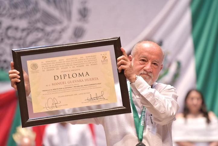 A su vez, el gobernador Cuitláhuac García Jiménez manifestó que en esta ocasión “resaltamos los méritos del doctor Manuel Guevara Huerta, su lucha decidida y también esta ferviente pasión por dejar un legado entre los jóvenes durante 45 años por la preservación del medio ambiente; todas sus acciones son loables y hoy lo llenan de mérito a la honra pública”.