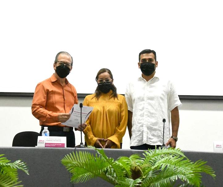 Al finalizar el evento, la Mtra. Arduizur Martínez Vázquez, Titular de la Unidad Técnica de Igualdad de Género e Inclusión, entregó un reconocimiento al Mtro. Marco Antonio Rodríguez Revoredo por sus valiosas aportaciones de parte del OPLE Veracruz.