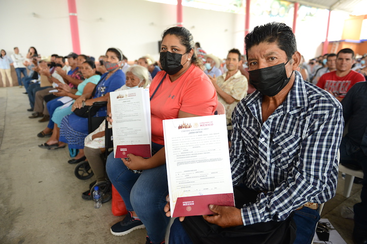 “A la llegada del presidente Andrés Manuel López Obrador, la instrucción fue dotar a la gente del campo de certeza jurídica, como dicen los abogados, el papelito que habla y sea un patrimonio de la gente y la comunidad”, expresó el mandatario en presencia de habitantes de 27 ejidos.