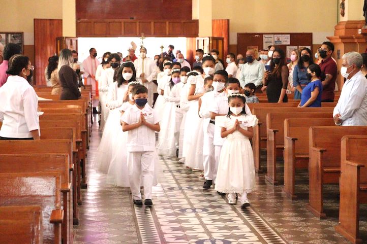 En el marco de las fiestas patronales en honor a los sagrados corazones de Jesús y María, Mons. Jorge Carlos Patrón Wong confirmó a alrededor de 50 niños en la Rectoría ubicada en la calle Altamirano del centro de Xalapa, cuyo rector es el P. José Luis Ortiz.