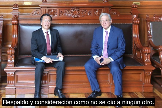 En territorio estatal, en múltiples ocasiones, AMLO lo ha exaltado, lo mismo que en sus conferencias mañaneras en el Palacio Nacional ha salido a darle su apoyo cuando ha estado en el ojo del huracán por temas polémicos que se han desatado.