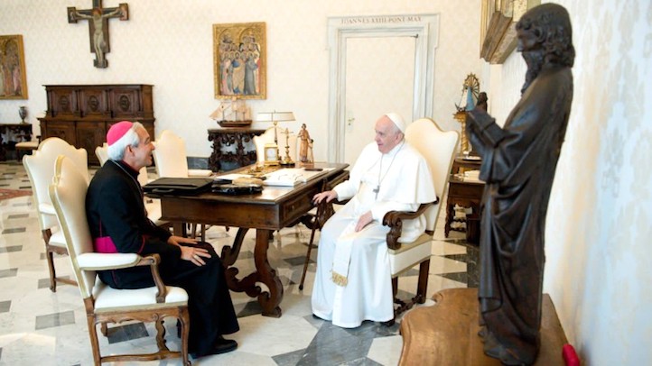 Después de la homilía, la Eucaristía continuo como de costumbre, el Papa hizo la bendición de los palios y los entregó personalmente a los 44 Arzobispos metropolitanos recién nombrados, ente ellos al arzobispo de Xalapa, a Mons. Jorge Carlos Patrón Wong, quien al momento de estar frente al Santo Padre se le vio alegre, incluso el Papá soltó una carcajada al dialogar por breves momentos con Mons. Patrón.