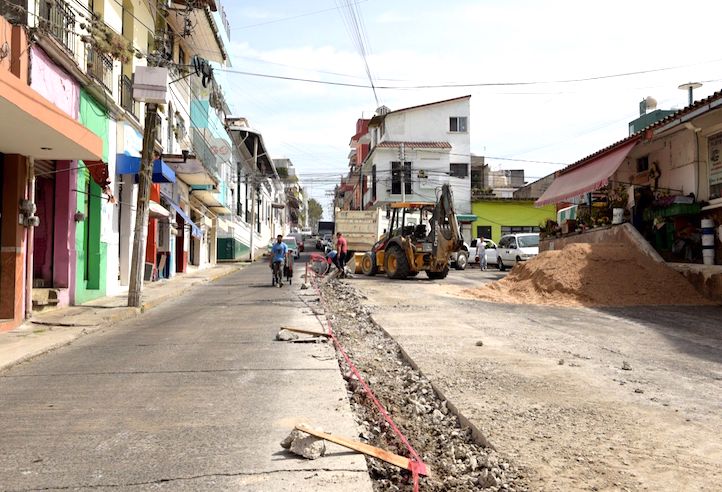 Entre las obras que se realizan en el Centro Histórico, destaca la rehabilitación de la calle Nogueira, entre Aldama y Xalapeños Ilustres.