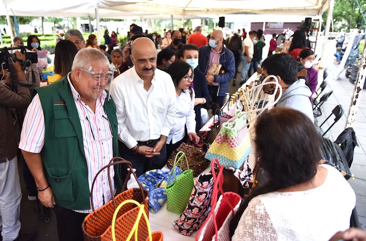 Xalapa, Ver., 15 de julio de 2022.- El alcalde Ricardo Ahued Bardahuil y el delegado federal Manuel Huerta Ladrón de Guevara, durante la Primera Feria de Tandas para el Bienestar, en el parque Benito Juárez.