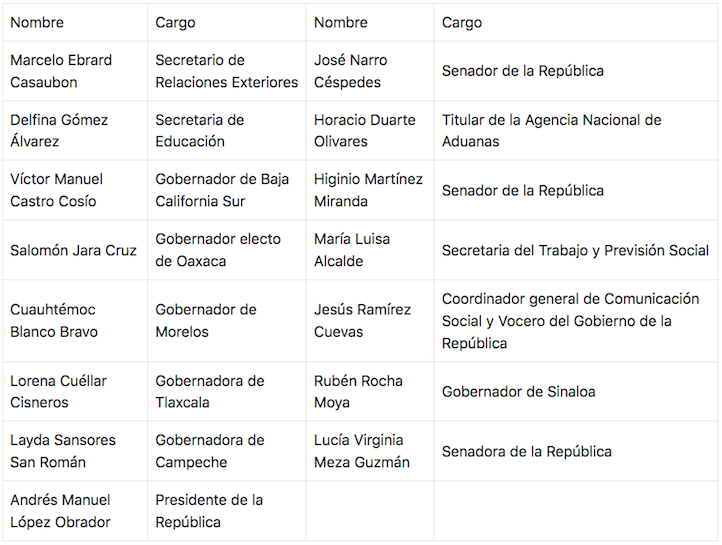 Referente a las y los servidores públicos que no asistieron al evento celebrado el 26 de junio de 2022 en el estado de Coahuila, la Comisión de Quejas y Denuncias del INE declaró improcedente la emisión de tutela preventiva, al tener certeza de que las 15 personas que se enuncian a continuación no participaron en dicho evento ni se cuenta con elementos probatorios de que hayan participado directa o indirectamente en su organización o realización, a saber: