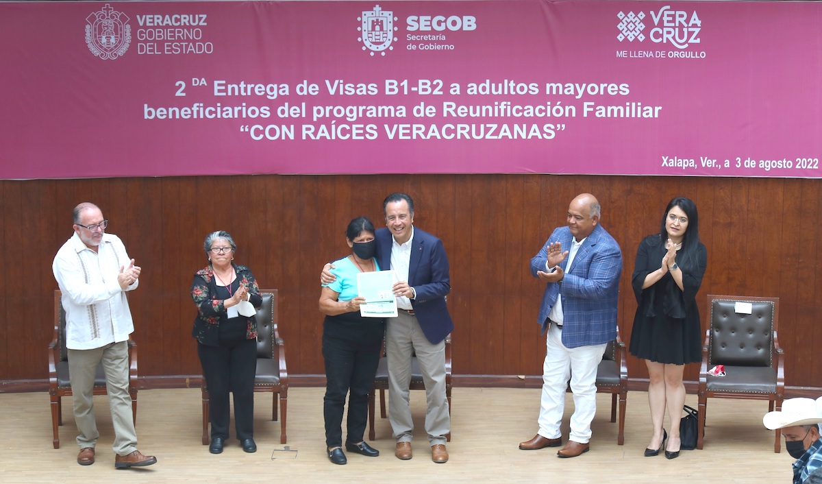 Xalapa, Ver., 03 de agosto de 2022.- A través del Programa de Reunificación Familiar Con raíces veracruzanas, el Gobierno del Estado entregó 197 visas B1/B2 a personas adultas mayores, quienes cumplirán el sueño de viajar a Estados Unidos para reencontrarse temporalmente con sus hijas e hijos, a quienes no han visto desde hace décadas.