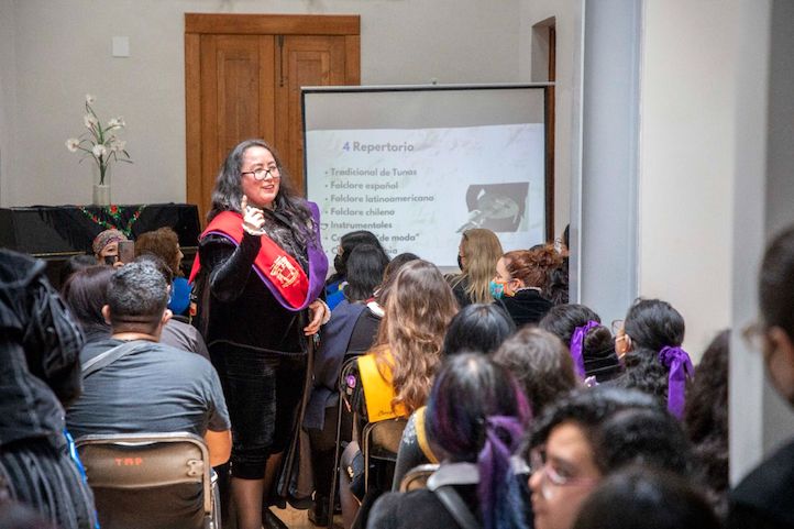 Xalapa, Ver., 06 de agosto de 2022.- Como parte del programa del Noveno Festival Internacional de Tunas Femeniles, en el Museo de la Música Veracruzana, “Casa Doña Falla”, Lily Sambler Villagra ofreció la conferencia “De Chile a México: Una concepción de la tunería femenina”.