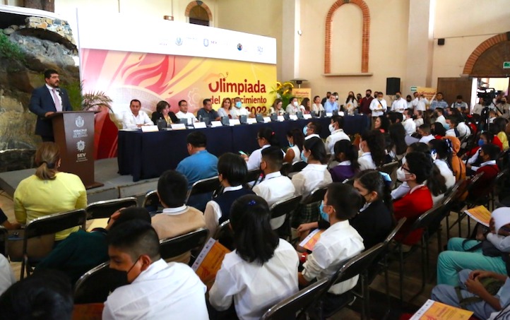 Xalapa, Ver., 15 de agosto de 2022.- La Secretaría de Educación de Veracruz (SEV) reconoció el esfuerzo y dedicación de los 92 alumnos sobresalientes que participaron en la Olimpiada del Conocimiento Infantil ciclo 2021-2022, acreedores a una beca de la Fundación BBVA para el acompañamiento durante 10 años, con el fin de que concluyan la preparatoria y universidad manteniendo un promedio mínimo de 8.