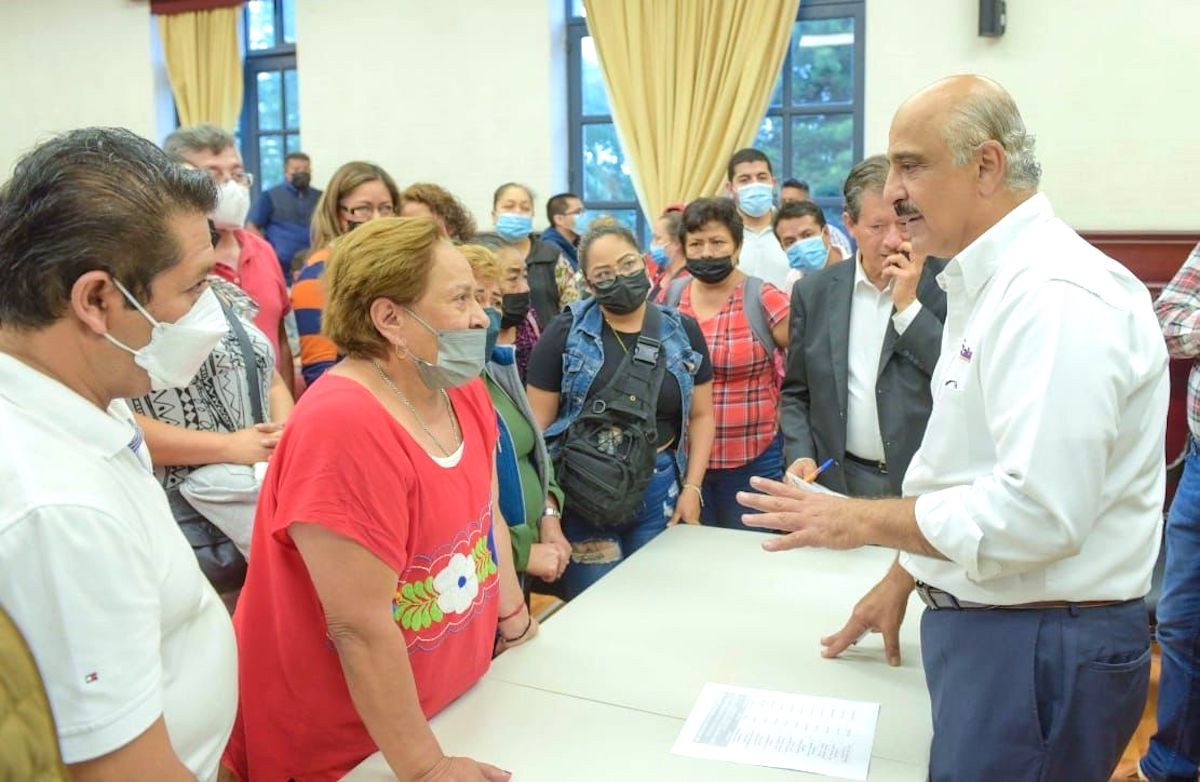 Xalapa, Ver., 17 de agosto de 2022.- El presidente municipal Ricardo Ahued Bardahuil se reunió con vecinos de la calle Rojano y comerciantes del mercado Alcalde y García, “San José”, con el fin de dar seguimiento a sus inquietudes y propuestas relacionadas con el proyecto de rehabilitación integral de esta vialidad.