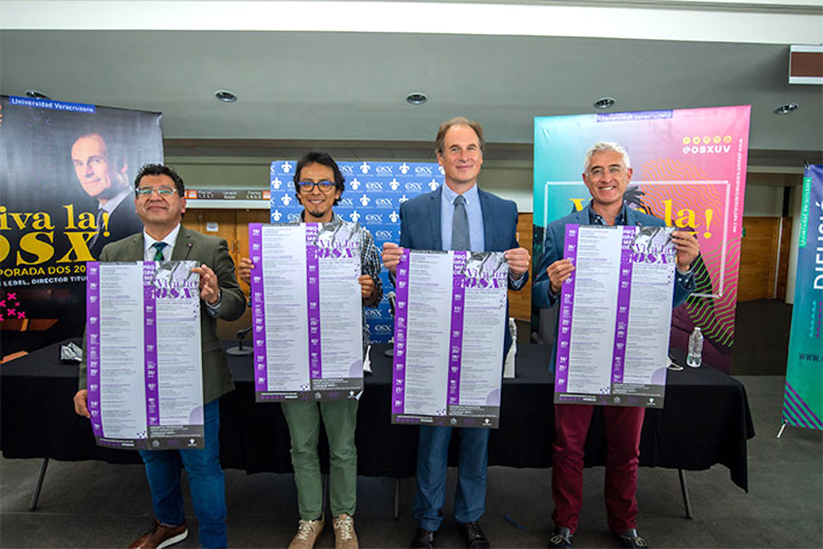 En el anuncio estuvieron: Alfonso Colorado Hernández, director general de Difusión Cultural; Martin Lebel, director de la OSX; Facundo Pacheco Rojas, director general de la Fundación UV, y Rey Alejandro Conde Valdivia, director de Grupos Artísticos.