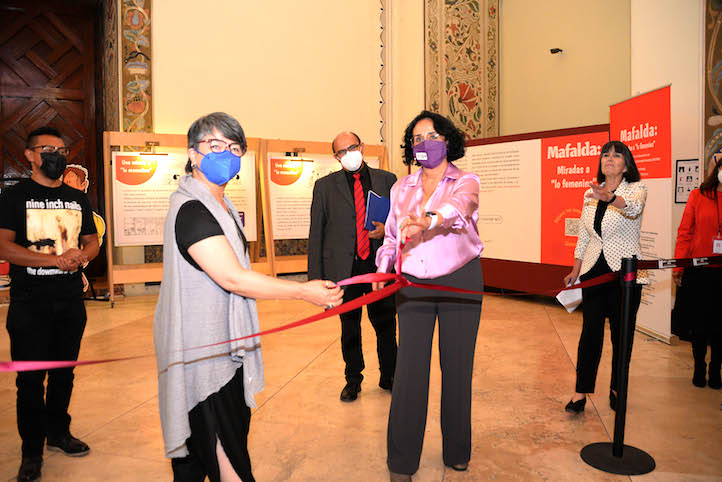 Julieta Colombo Marrón, en representación de Sucesores de Joaquín Salvador Lavado Tejón (Quino), agradeció la organización de esta muestra y utilizar las tiras de la historieta de Mafalda para profundizar sobre las miradas a lo femenino.