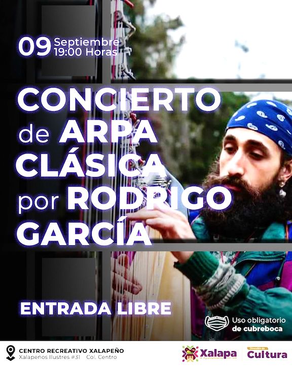 Para el viernes 9 de septiembre a las 19:00 horas, en el CRX se realizará un concierto de arpa clásica a cargo de Rodrigo García.