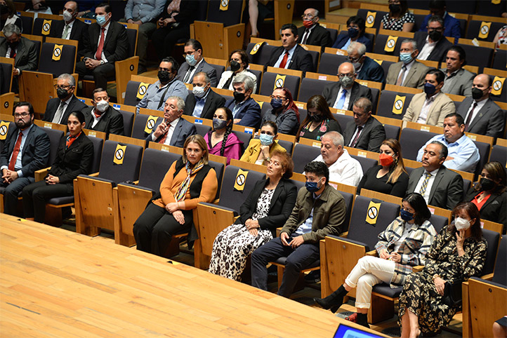 En el presídium le acompañaron el gobernador de Veracruz, Cuitláhuac García Jiménez, como invitado especial, además de Elena Rustrián Portilla, secretaria del Consejo y Académica de la institución; Lizbeth Viveros Cancino, secretaria de Administración y Finanzas; Jaqueline Jongitud Zamora, secretaria de Desarrollo Institucional, la Abogada General, Marisol Luna Leal.