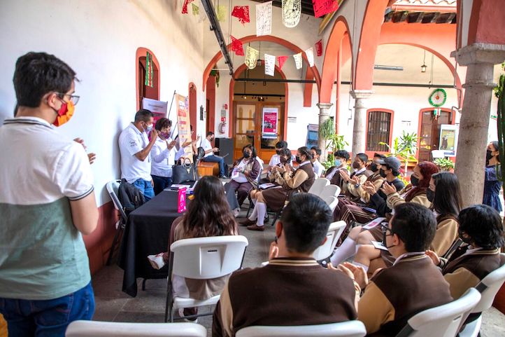 Xalapa, Ver., 21 de septiembre de 2022.- Como parte del Festival por la Lectura que organizan el Ayuntamiento, el Fondo de Cultura Económica (FCE) y Educal, integrantes de la Brigada de promoción de la lectura “Mujeres Insurgentes”, encabezada por Julieta Jiménez Torres, realizó un taller sobre libros de la Colección 21 para el 21 del FCE, en el Centro Recreativo Xalapeño. Asistieron la regidora Guadalupe Márquez Leonardo y alumnos de bachillerato del municipio.