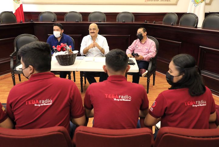 Xalapa, Ver., 23 de septiembre de 2022.- El presidente municipal Ricardo Ahued Bardahuil y el regidor Antonio Ballesteros Grayeb, recibieron a estudiantes del Telebachillerato Boca del Monte, quienes como parte de un viaje de estudios, visitaron esta mañana las instalaciones del Palacio Municipal acompañados por el director fundador de “Teba-Radio, la voz del estudiante”, Julio César Illescas Bandala.